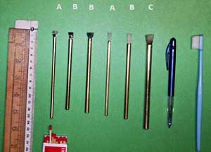 These brushes were originally made to this design over 25 years ago for cleaning, maintaining and restoring aluminium alloy surfaces on motorcycles. The dimensions of the brushes were selected so that the deep nooks and crannies as found on air cooled engines could be thoroughly cleaned without having to dismantle parts. And when parts are dismantled, the brushes allow fastidious cleaning of intricately shaped items, internal and external threads, splines, pinions.