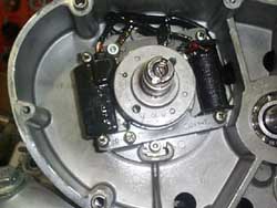 heavy original flywheel, note: only low speed coil is used, high speed can be rewound to charge battery for lights etc. Thanks Phil!