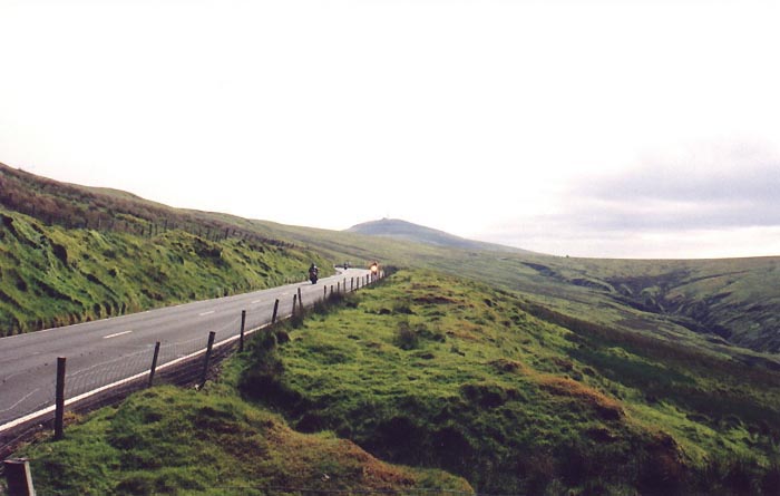 Today it is not raining yet so we feel we may see some more racing and decide to go to the famous parts of the course we have heard of. First there is Bray Hill and its high speed down hill followed by an up hill. The bikes come through here at quite some speed but other than a high speed wobble it is not very impressive race watching. We move on to Ago's Leap only to find that the wonderful pictures we have always seen in the magazines and tourist brochures were taken from some one's front yard and not accessible to us. We do get to see some front wheels leave the ground at speed but only from a distance and even my 200-mm telephoto lens will not make for much of a picture. The second race is shortened for rain, what a surprise.