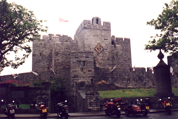 After several calls and much discussion it was determined that we could catch the ferry at Liverpool at 3:00 p.m. Thanks to the Beatles I even knew where Liverpool was. We all jumped at the chance to get on the island on Friday so we could see the junior TT race on Saturday. The airlines gave us some vouchers for breakfast and we were introduced to bangers, a very greasy breakfast sausage. A small van was rented and we were off for the ferry. We all agreed that even though we would have preferred a 45-minute flight to the four-hour ferry ride that it was something that should not be missed. Watching all the bikes line up to get on the ferry and how they were tied down with ropes in the vehicle decks was an experience. We also got our first introduction to the European biker and found that the camaraderie of the bike is not limited to the US. I had a difficult time explaining why Craig and I had such different accents when we came from the same town in the US. The distinction of a southerner and a Yankee was not something they were familiar with. I left it up to Craig to explain what the point of a NASCAR race was!