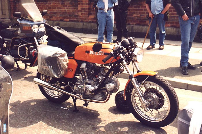 Before we left I had been in touch with Bob Williams of the International Laverda Owners Club and we made plans to attend their meeting. Off to Crosby and the many Italian bikes that showed up. Almost all-Italian brands were represented but Laverda was the most numerous. The surprising thing was the total absence of any early twins, not one 750 or 500 and only one lone 650 new generation twin. All sorts of triples were there and even one converted to kick starting. The man likes a light bike. One man came up asking about the best place to get parts in England. He was speaking Italian and picked on me to ask My Italian is almost nonexistent but with my Spanish training and what I heard from my relatives as a kid I tried to help out. After a half-hour of pantomime and broken Italian we had answered all his questions. I asked him his name and it did not sound Italian and it turns out he was from France and felt Italian would be the best language for the club event. It turns out that John, who I was translating for, speaks fluent French.